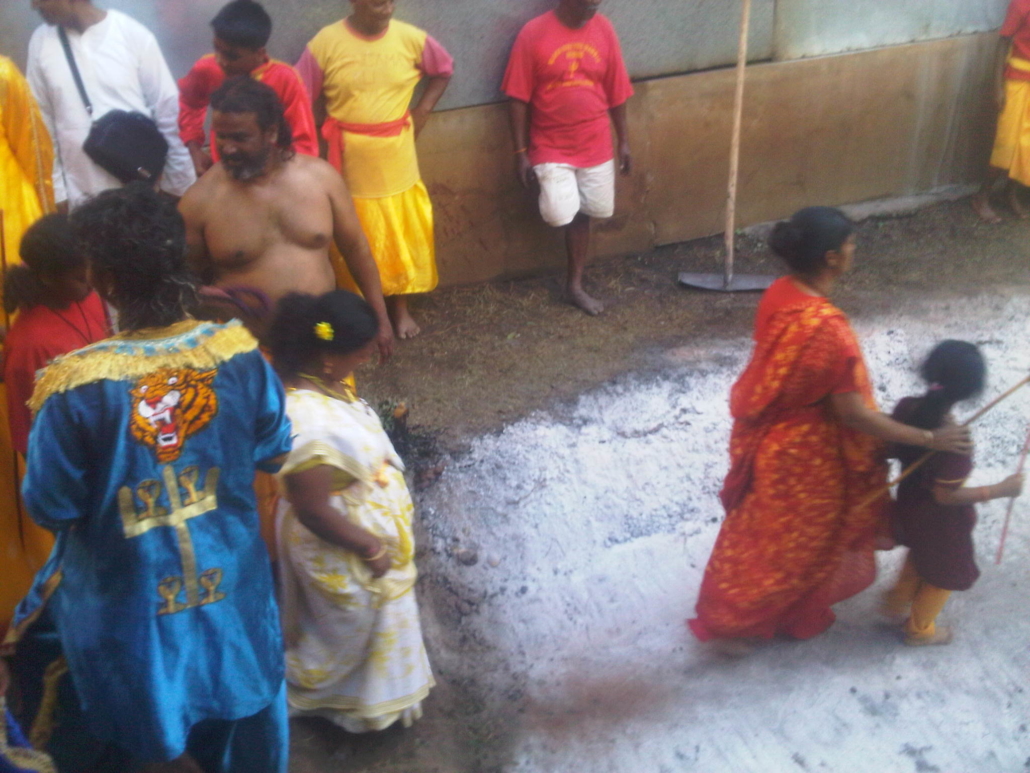 S’insérer des tiges sous la peau n’est pas plus douloureux, dit-on, que se faire percer les oreilles. Pour les enfants et les femmes tamouls en fin de cortège, les adultes ont bien pris soin de balayer les braises et de ne laisser que des cendres. Mais pour ceux qui les ont précédés, comment expliquer qu’ils aient pu marcher sur des charbons incandescents sans se brûler ?
